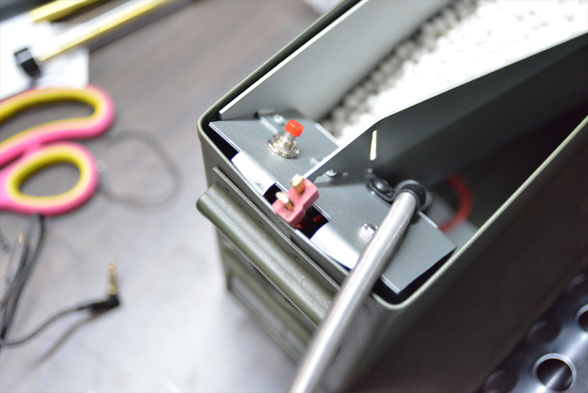 今回は、ここまで、コネクタ出してますが、本来は、下側にバッテリー事収納します。