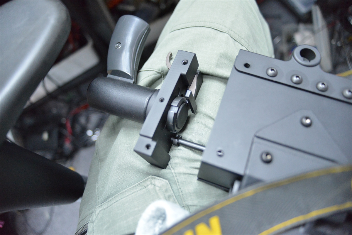赤いボタンは、矯正巻き上げで、その横にトリガー連動ピンの差し込みがあります。