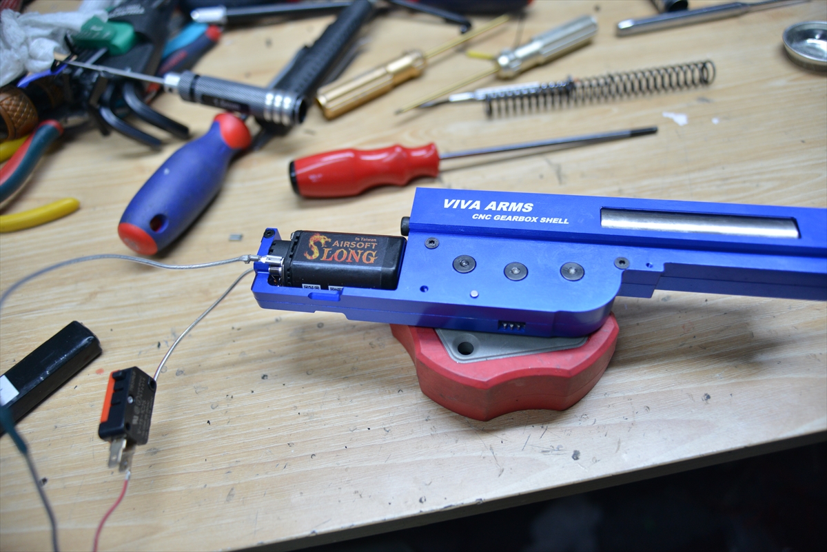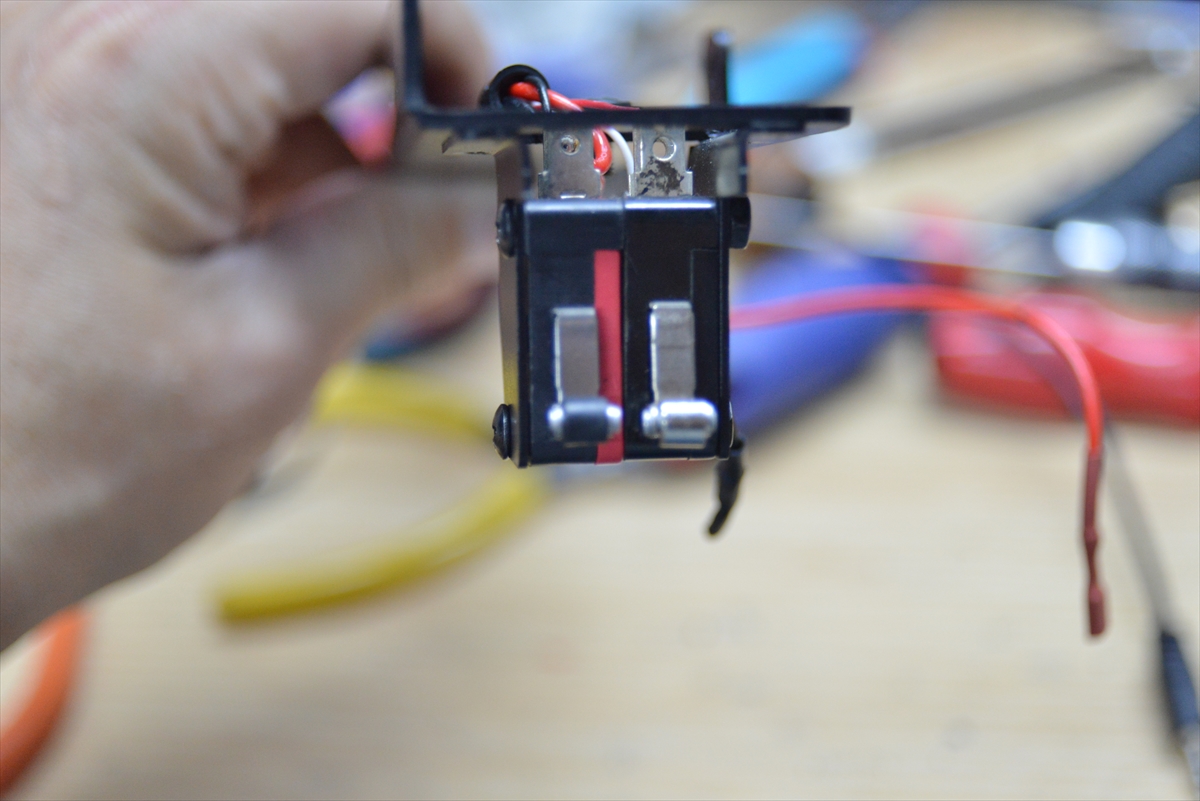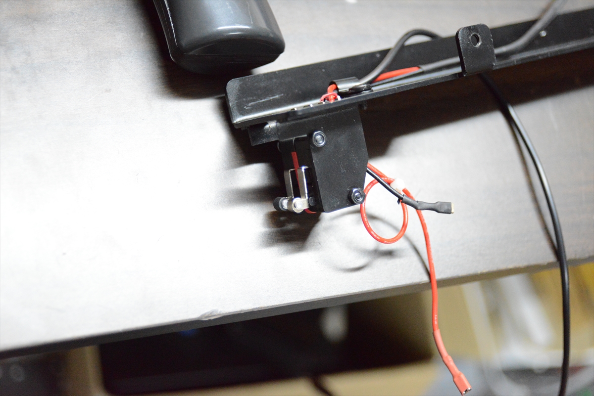 スイッチはマイクロスイッチで、奥側がモーター起動で、手前がマガジンモーターの起動スイッチとなります。