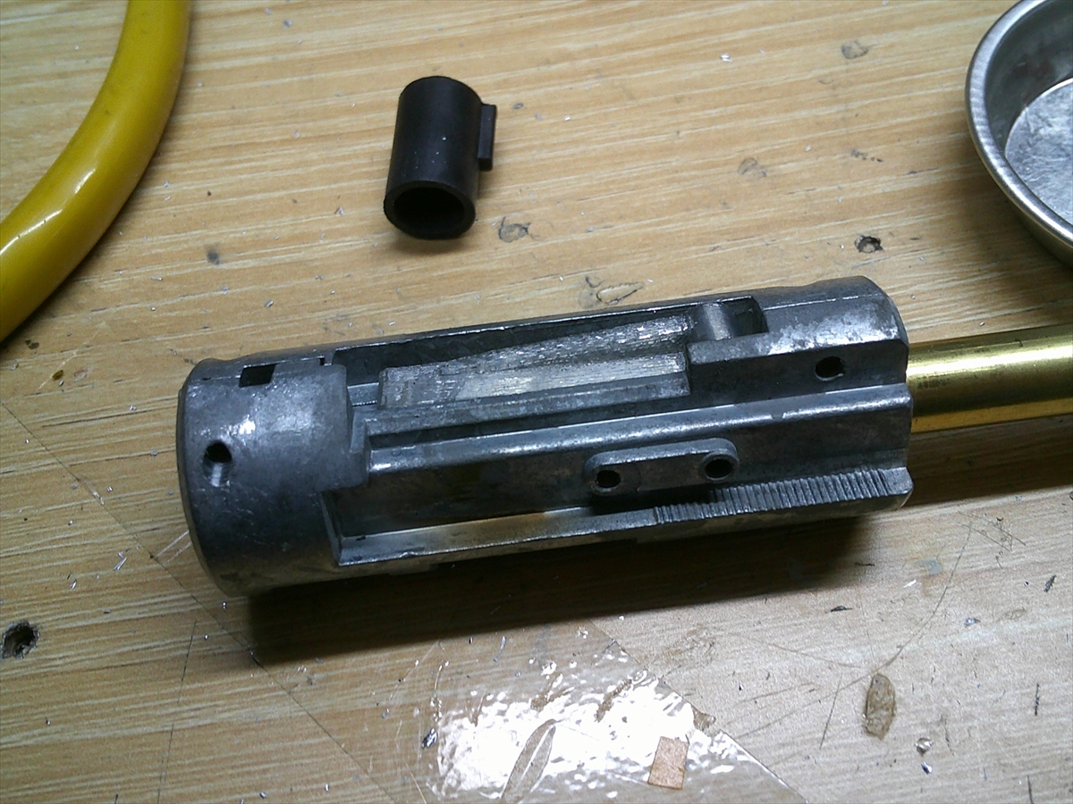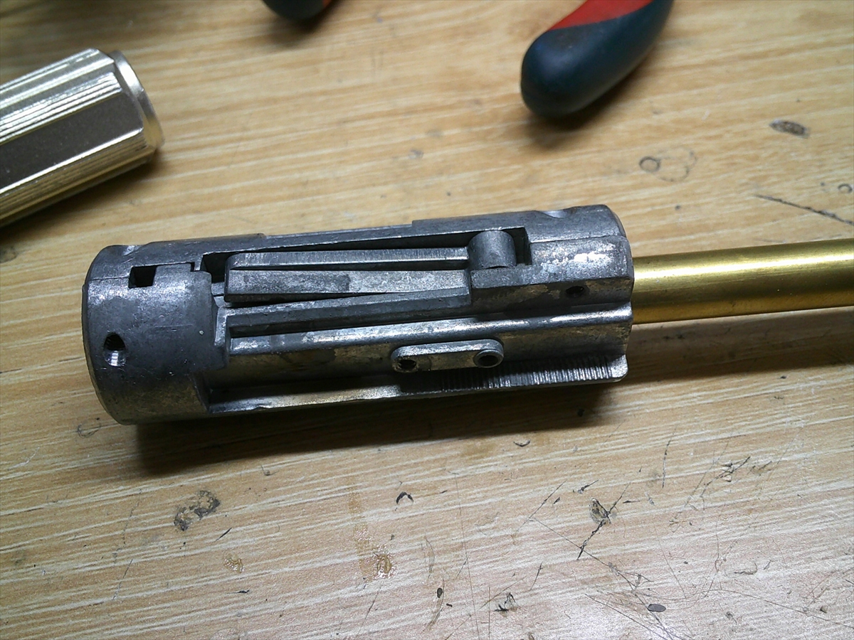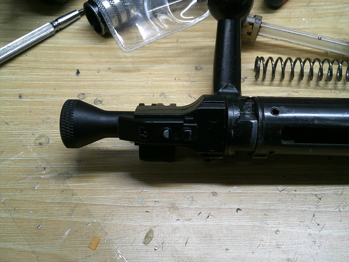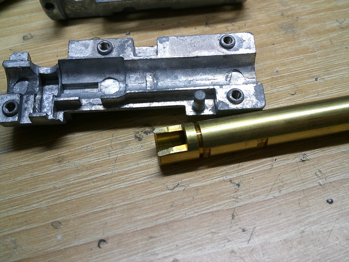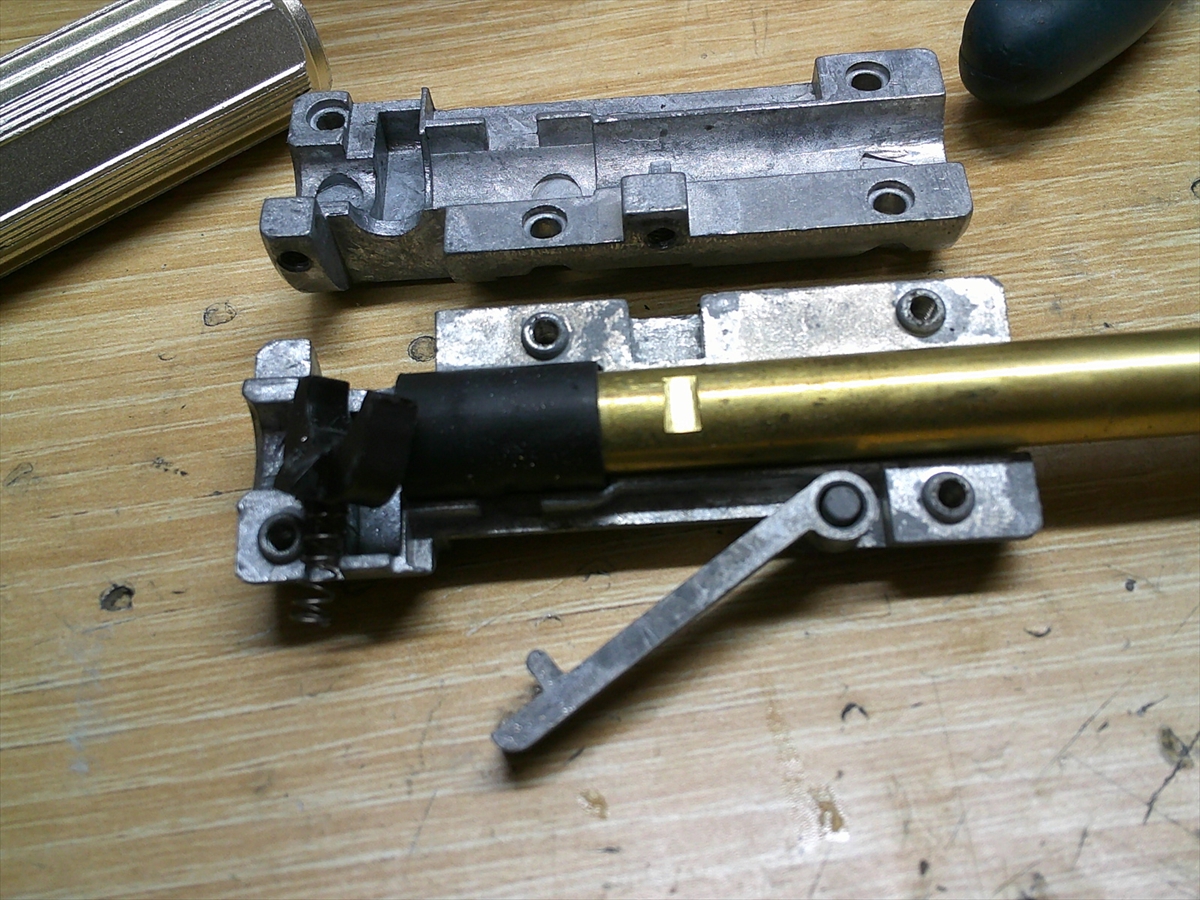 1903は、このアッパーパーツを組んでしまうと、初速が下がって、勝手にホップがかかる現象が度々あるのですが、この部分が悪さをしています。