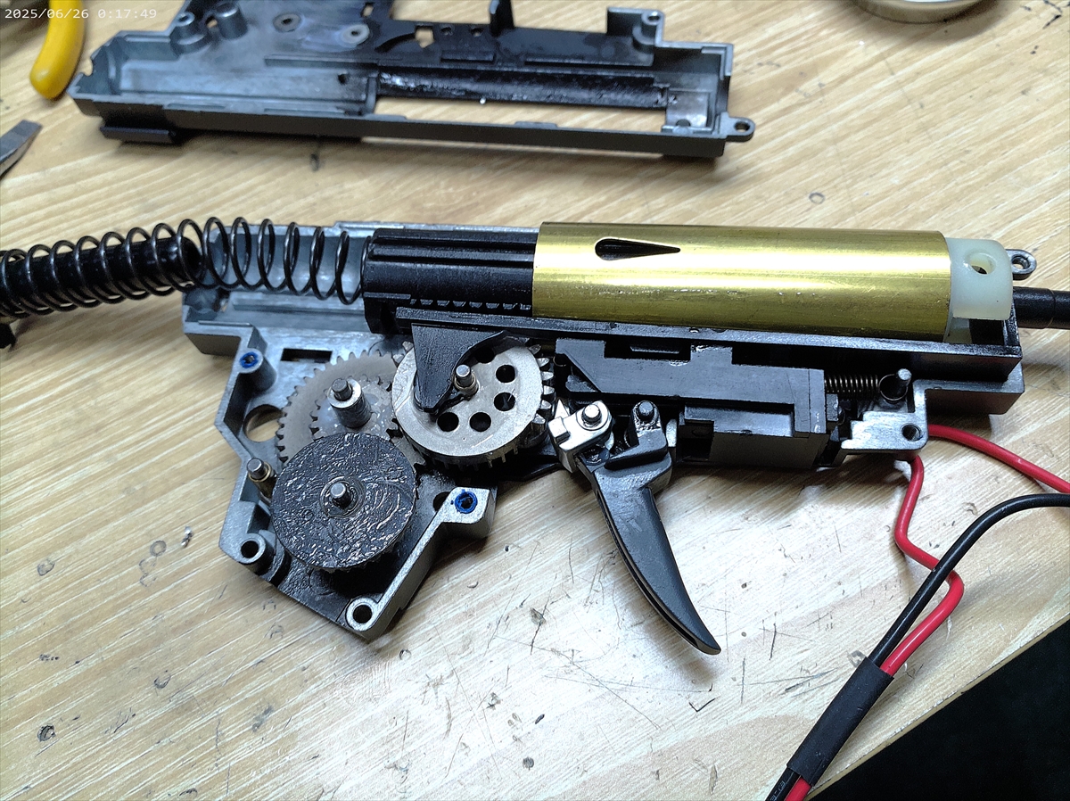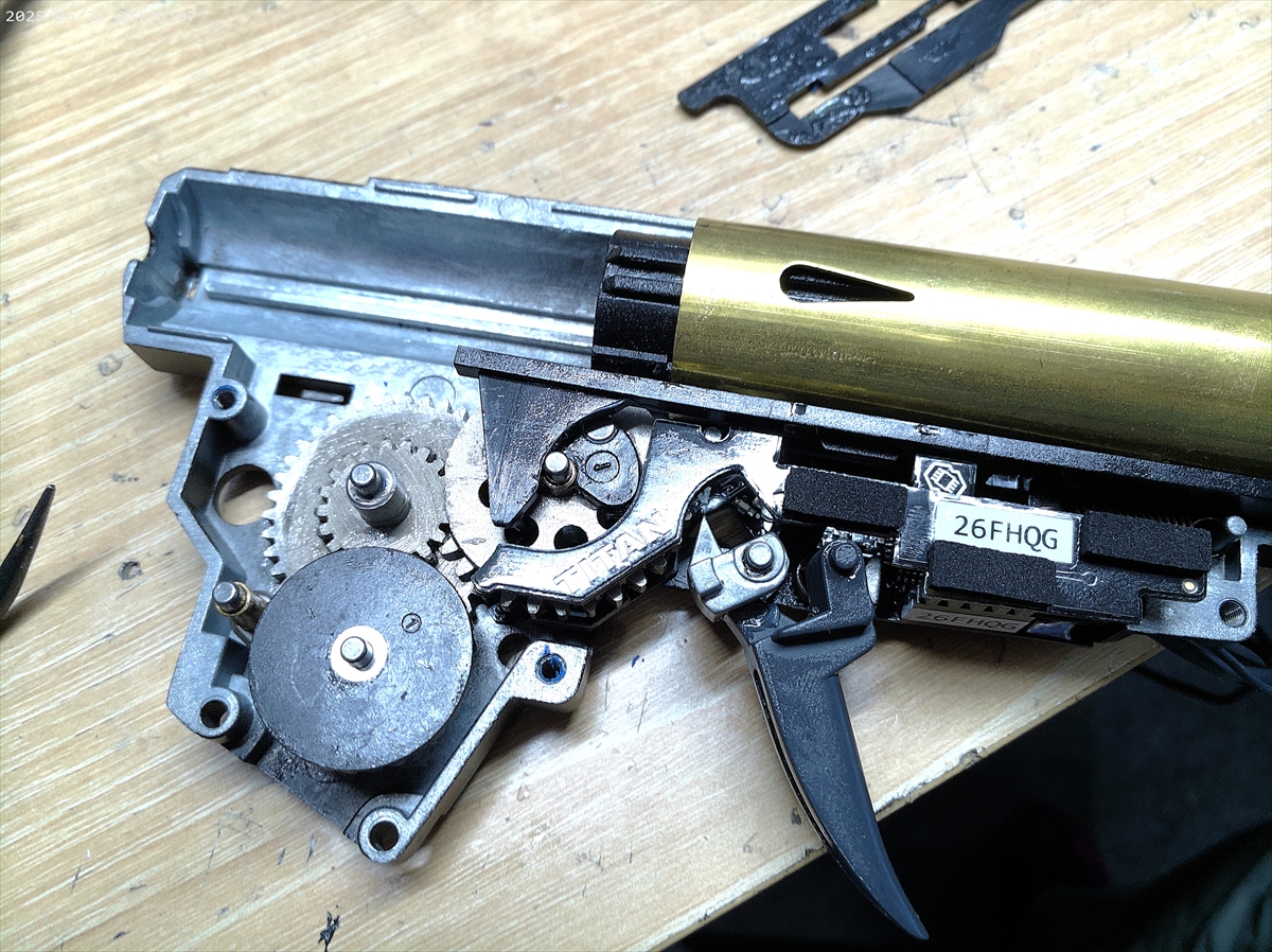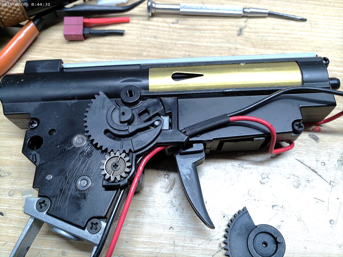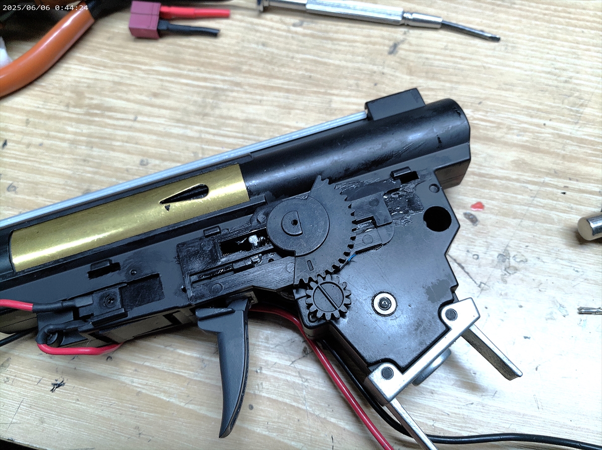 品質が低いメカボックスは、逆転防止ラッチとトリガーが基本外れてしまいます。