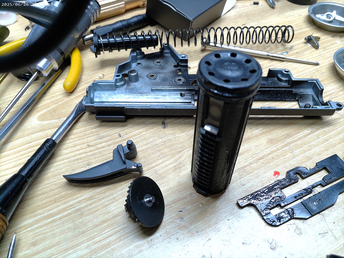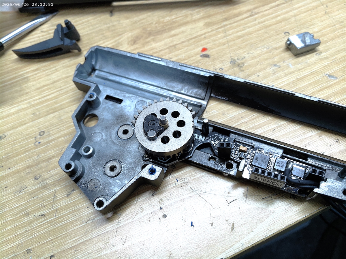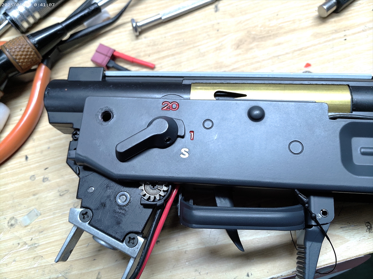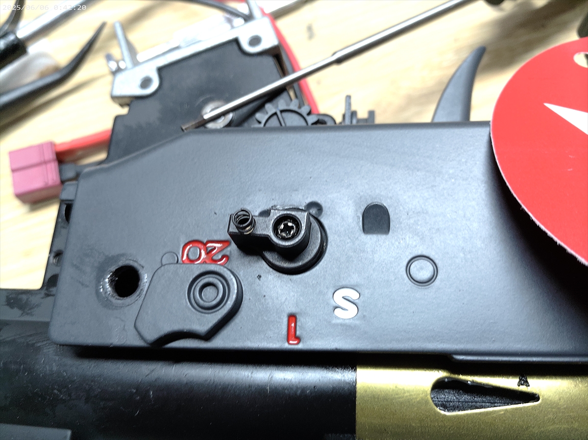 品質が低いメカボックスは、逆転防止ラッチとトリガーが基本外れてしまいます。