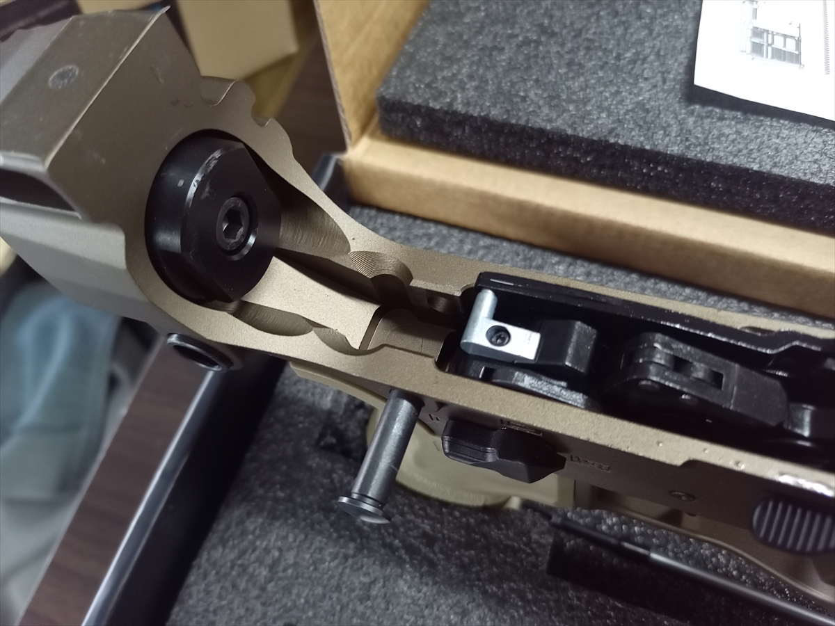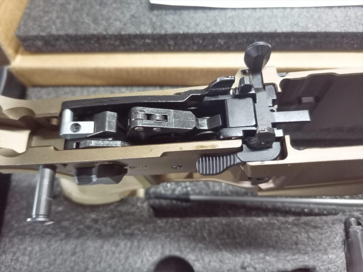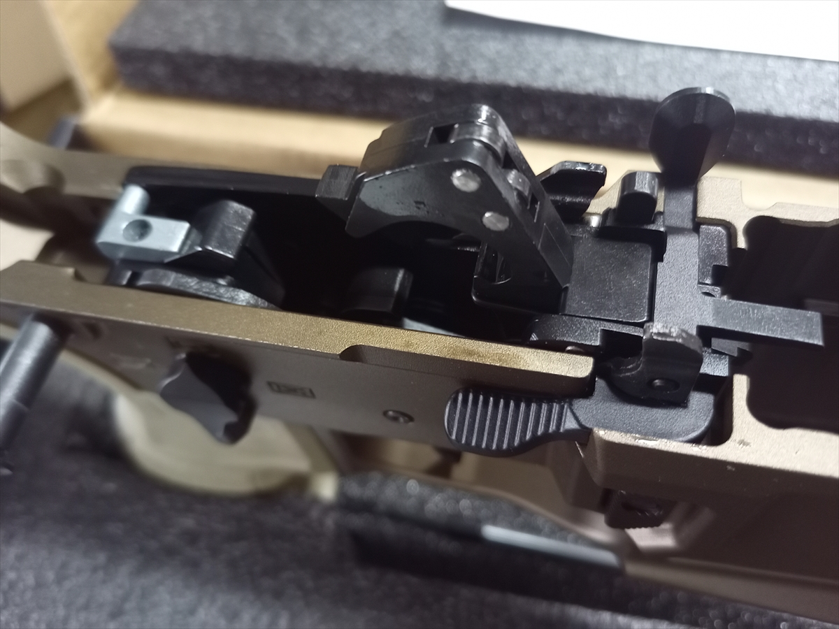 スチール製で、いま流行のMWSシステムでは無い感じで、トリガーフィールがありますね。