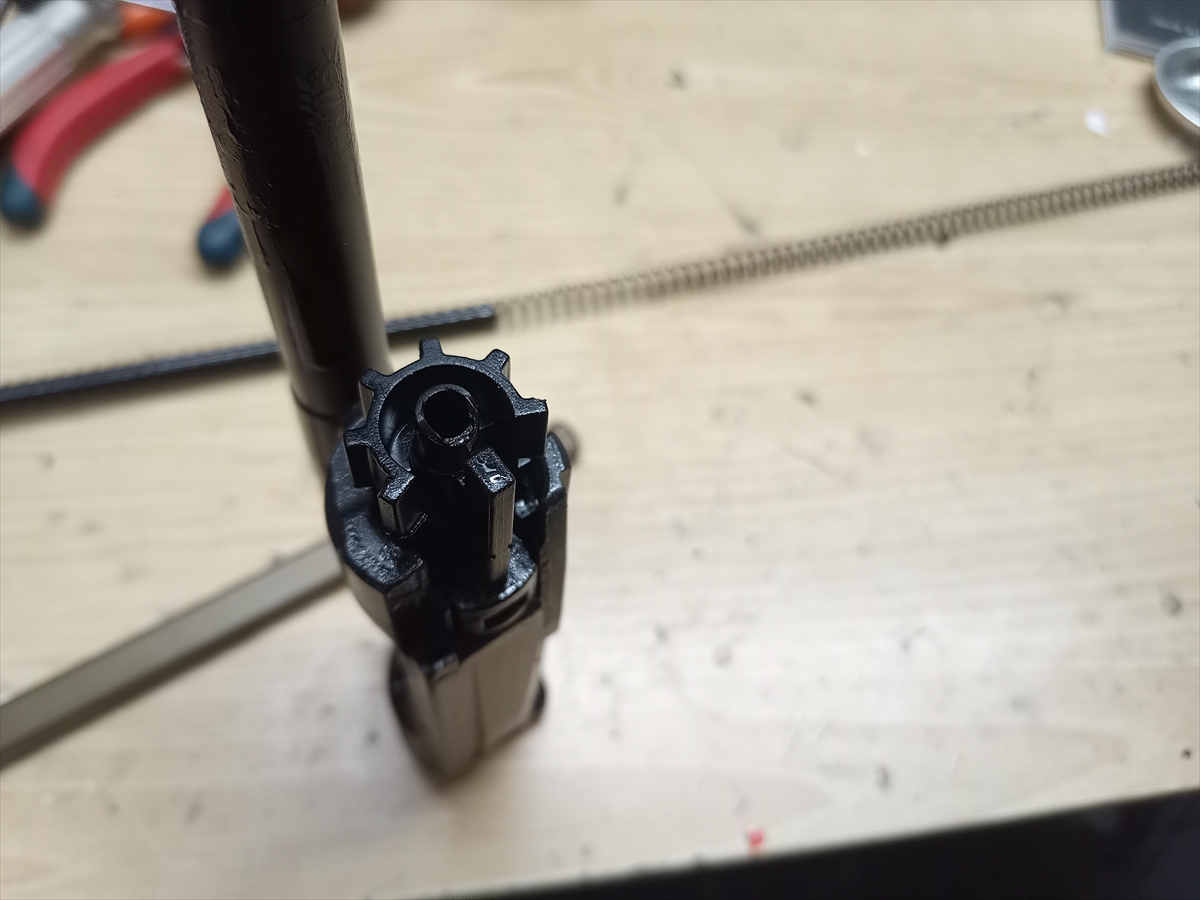 この状態で、下のテンションが掛かっているので、弾をローダーで入れて元に戻すだけです。