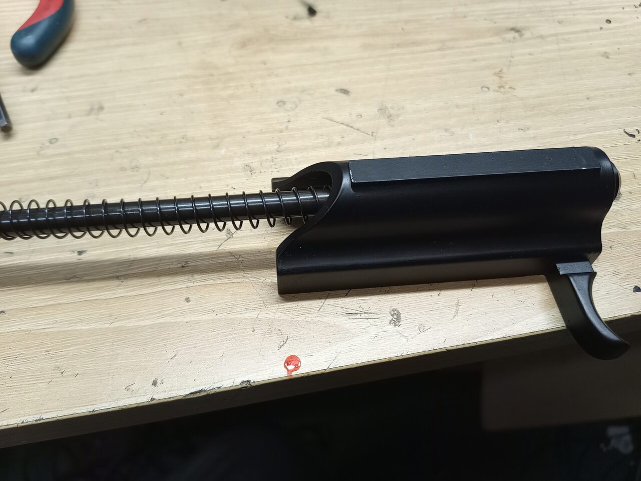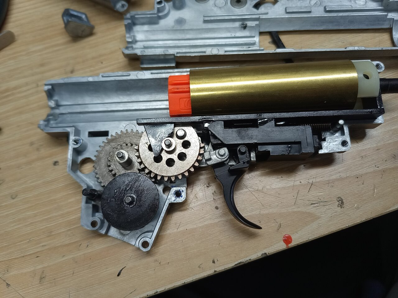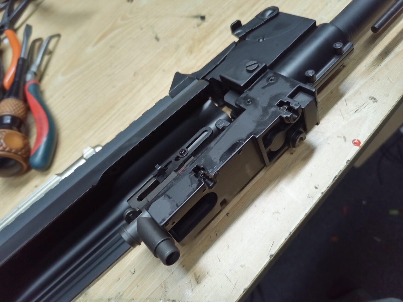 とあるメーカーだと、トリガー周り、ラッチ、タペットが押さえてないと外れるのがあります。