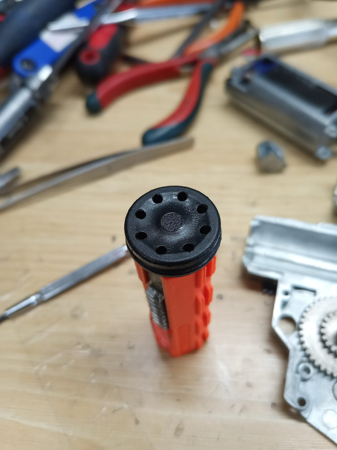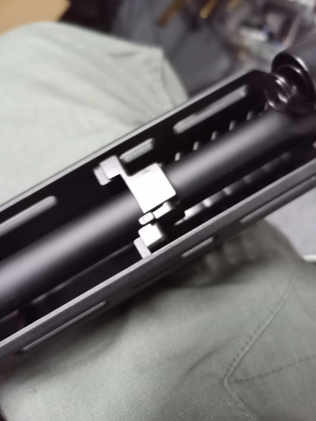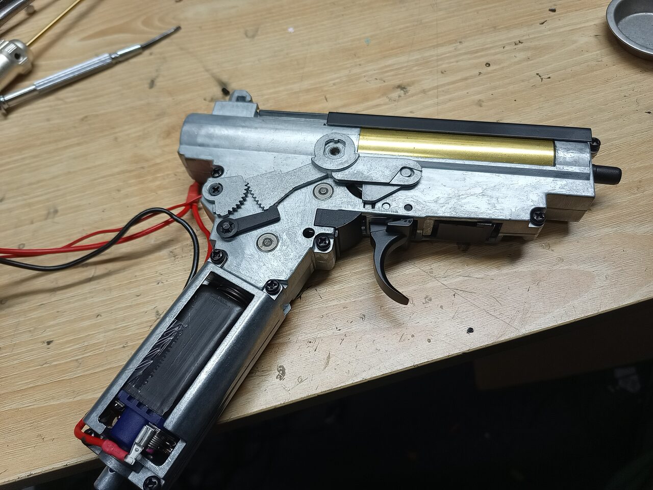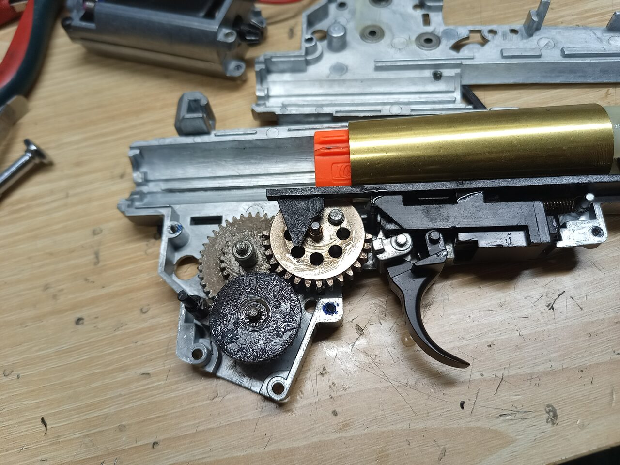 とあるメーカーだと、トリガー周り、ラッチ、タペットが押さえてないと外れるのがあります。